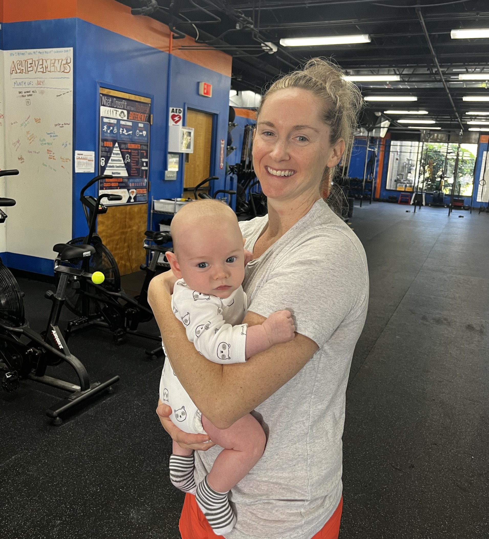 I pick things up and I put them down! Do a burpee with one hand on the dumbbell, and instead of jumping and clapping, you’ll deadlift and kb swing the db overhead. Complete half the reps on one side, then half the reps on the other. Choose a weight that you can move for 10 reps no problem on your non-dominant side. Then bike 15/12 calories which will take around one minute. Target 20-25 minutes.