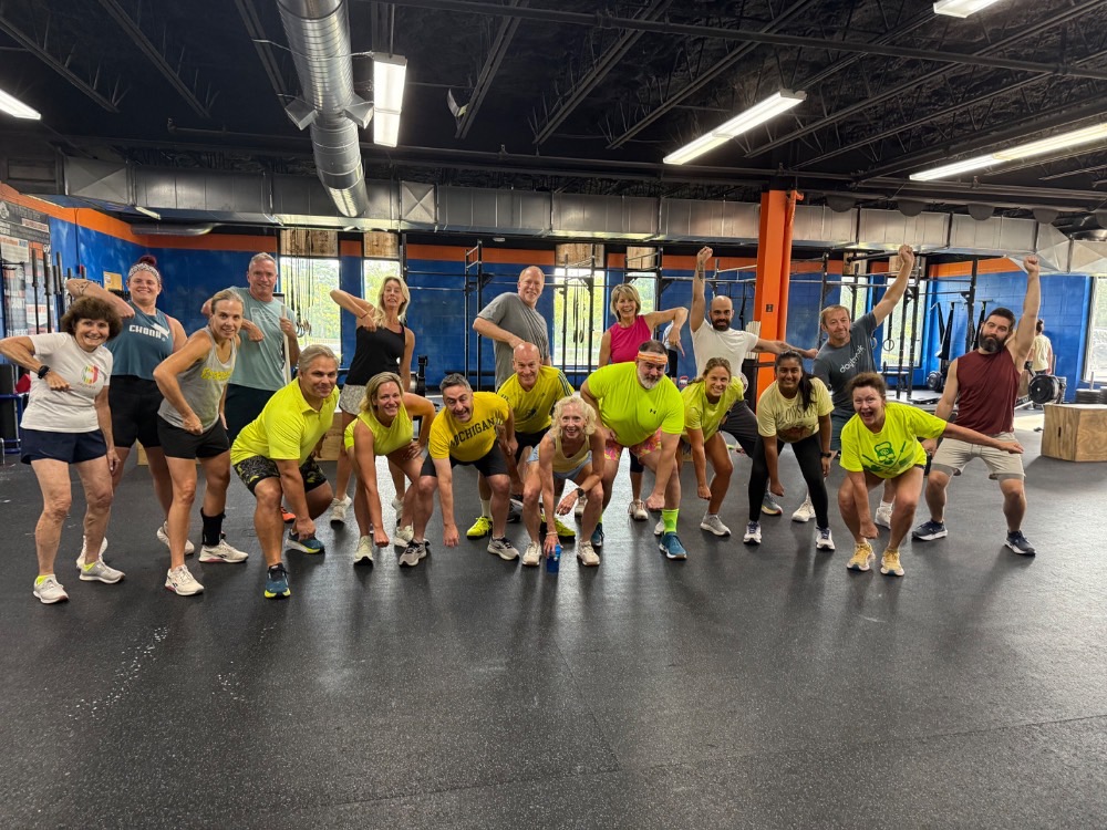 GOALS + GUIDANCE: Pace yourself early, this workout will build at the half way mark. Find a strong, sustainable pace on the bike. If you start with 12 calories, stick with 12 calories! Use a weight for the carry that taxes your grip. For the burpees, face a 25# plate. Have your chest hit the floor behind the plate then jump over the plate before spinning around for the next rep. Use the final minute to recover and steady your breathing.