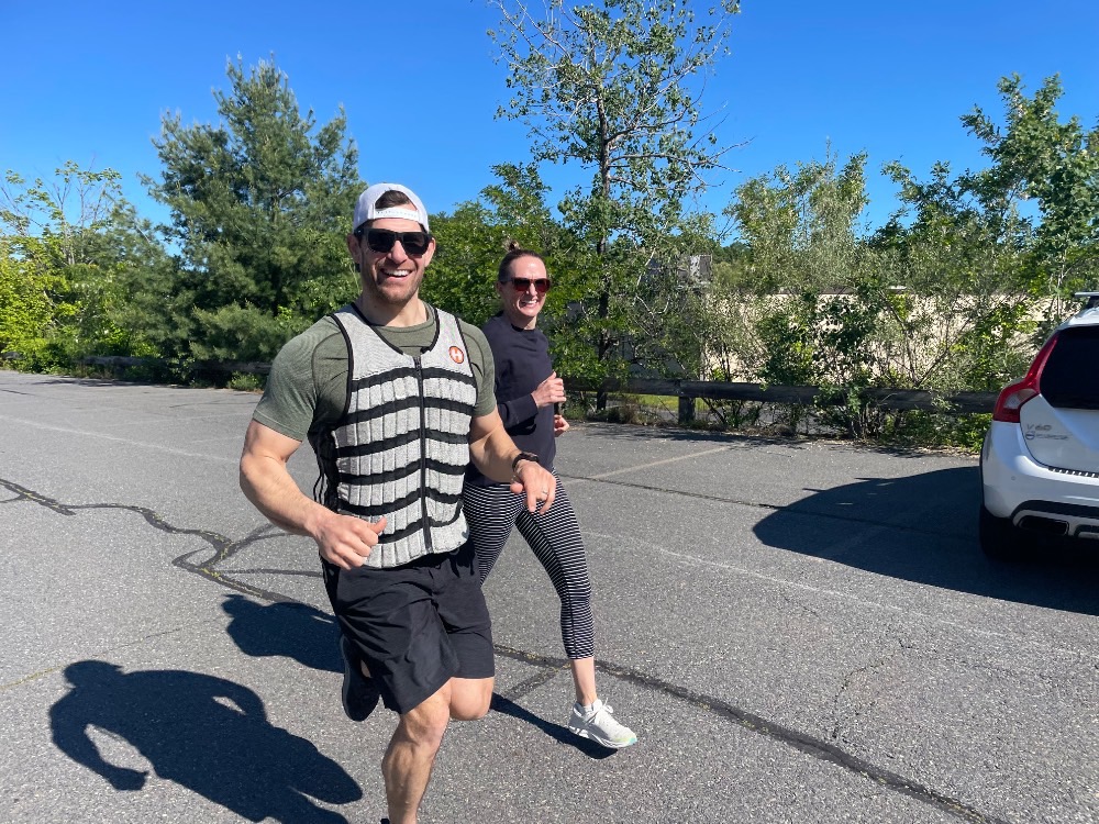 GOALS + GUIDANCE: Complete two strict pull ups, four lunges (total) with two dumbbells held in the suitcase position, and an eight second handstand hold. You can kick up to the handstand, climb your feet up (like a wall walk), or do a plank. Record your time for the ten rounds. Target 5-7 minutes.