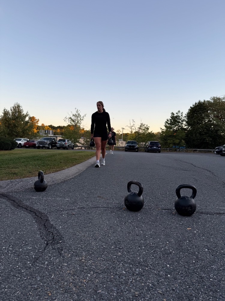 GOALS + GUIDANCE: Push hard on the bike (:45 or less) to start each round, then go for unbroken KB swings. On the step-ups, find a steady rhythm and alternate legs to stay moving without long pauses. Target 4 rounds.