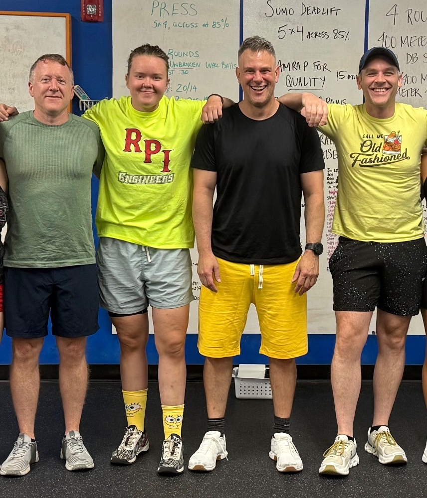 GG: Heavy Day! Yes, treat this workout like it’s a lifting day. Don’t worry about your interval time, focus on how much weight you can press overhead (you may have to break the set of six into 3/3) and how much weight you pull (same, you may have to break these up into 3/3 and maybe even 2/2/2.) Record the weights that you use, and the total time it takes to complete the eight rounds (rest included). Target 20 minutes.
