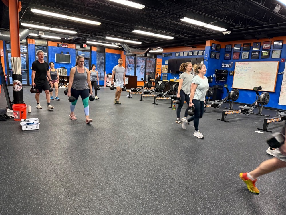 GOALS + GUIDANCE: The push ups will take :30 or less, do them unbroken or in sets of 5 reps. Bike the 10 cals in :60 or less. Use a plate for the overhead sit ups, you maybe have to break these to rest your shoulders. Complete each round with 10 x 25′ shuttles. Target 15 min.