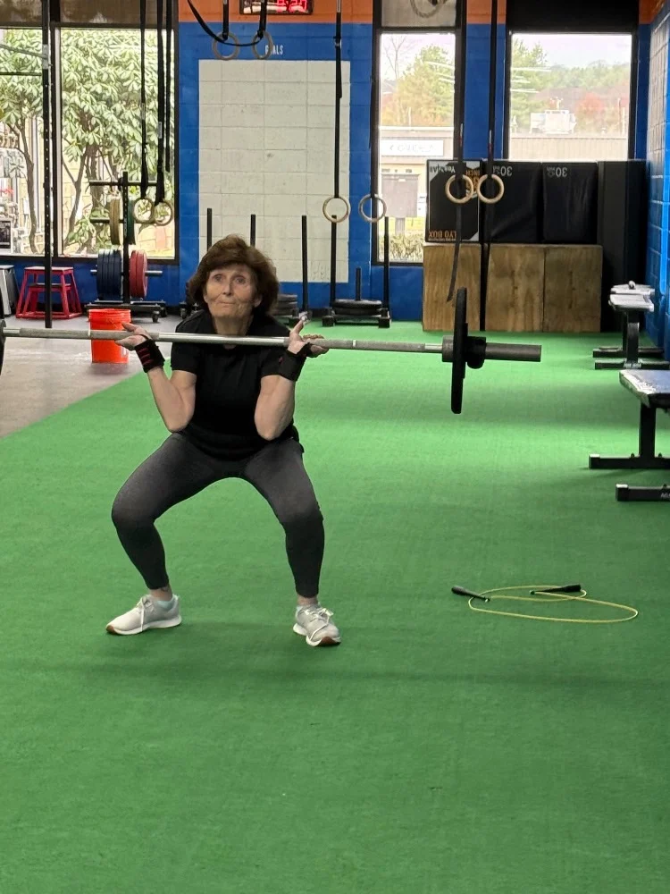 GOALS + GUIDANCE: With your heels elevated on a 10 pound plate, choose a HEAVY dumbbell or kettlebell to hold in the goblet position. Immediately after completing them, do 6 jumping air squats right into a VERY fast calorie row.